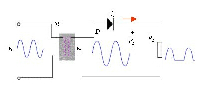 半波整流電路:半波整流就是利用二極管的單向?qū)щ娦阅埽菇?jīng)變壓器出來(lái)的電壓Vo只有半個(gè)周期可以到達(dá)負(fù)載,如下: