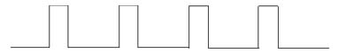 已經降到最窄了。如果輸出電壓電流繼續下降,要求控制脈沖繼續變窄,但PWM電路已無法滿足,這時電路變為間歇工作, 形如: